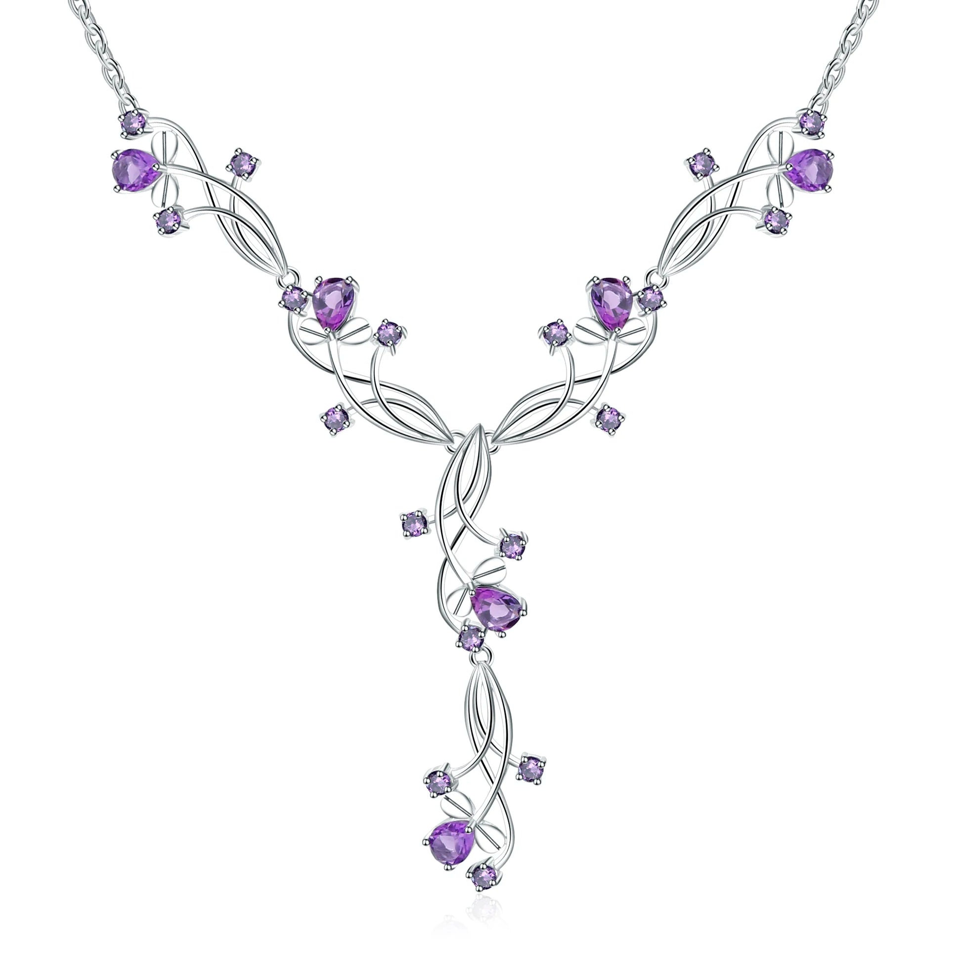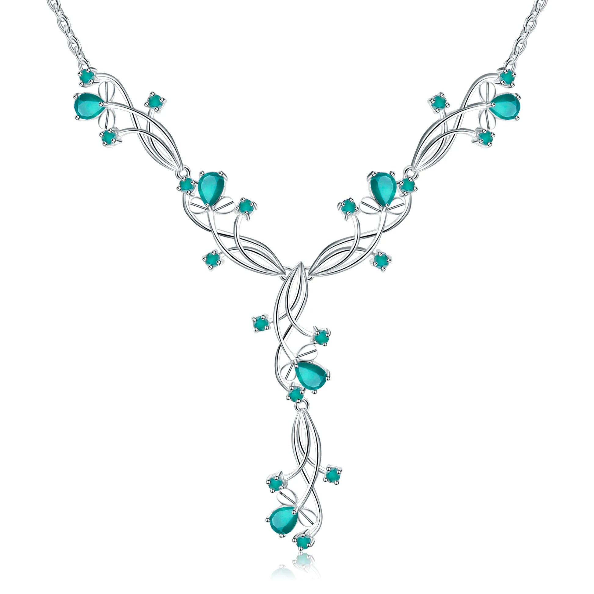 Experience the beauty of nature with this GRACE Gemstone Floral Necklace. Crafted with 925 sterling silver, this necklace features striking, natural pear-shaped stones for an elegant and timeless look. Embark on a journey with this classic, vintage style!