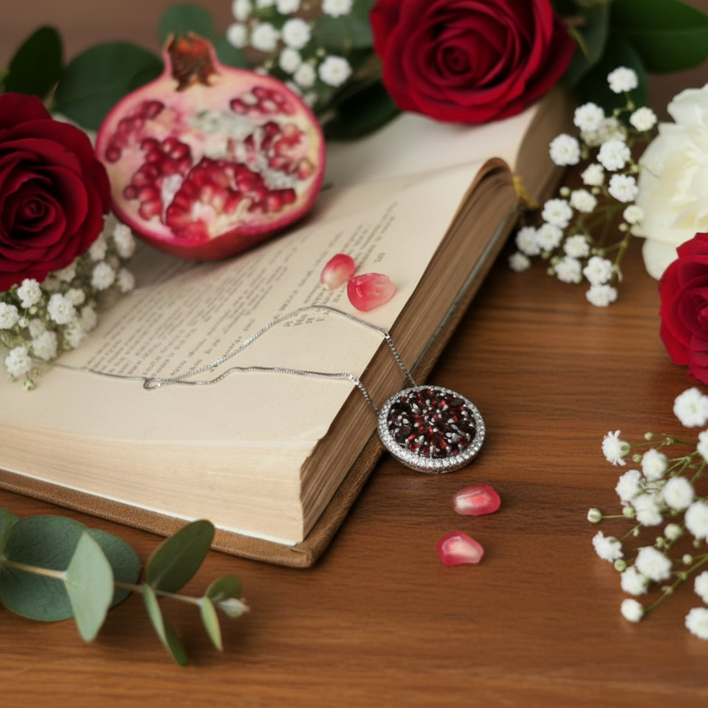 - Piedra principal: Granate rojo natural