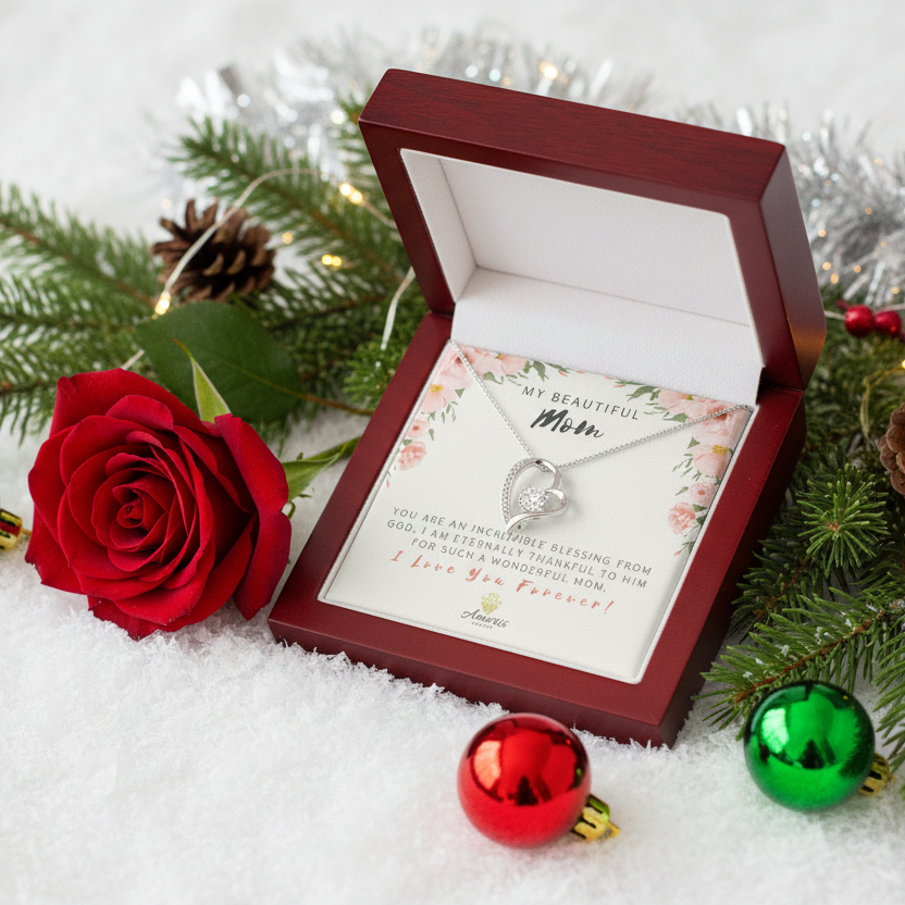 Collar "Mi hermosa mamá, amor eterno" con tarjeta con mensaje