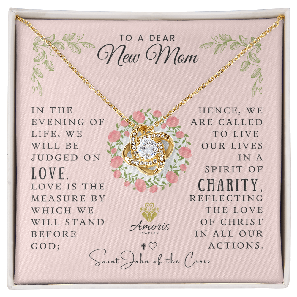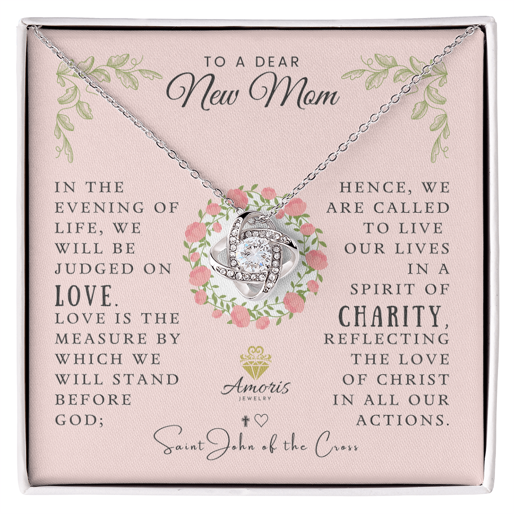 Collar con nudo de amor para una querida nueva mamá con cita de San Juan de la Cruz