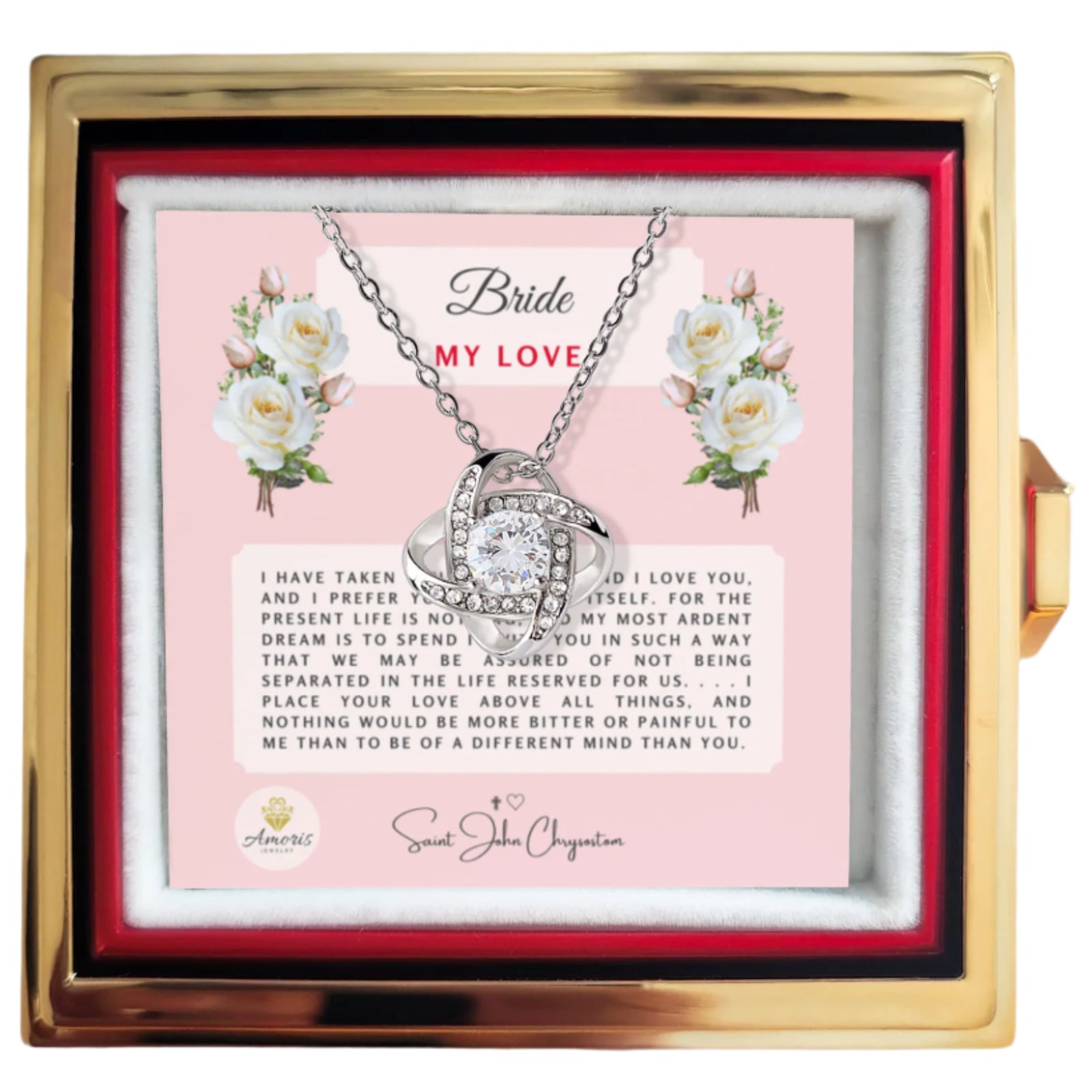 Collier Bride My Love avec Rose Éternelle et Citation de Saint Jean Chrysostome