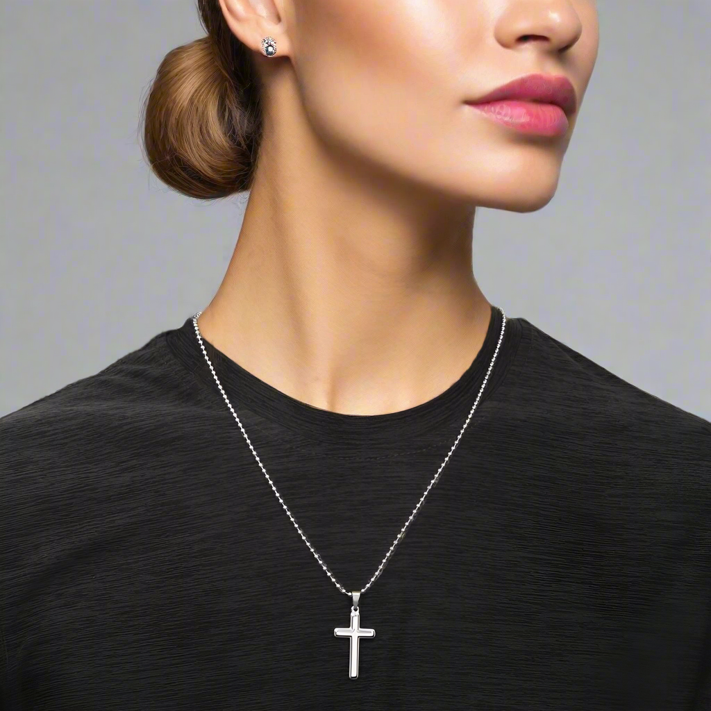 Affichez fièrement votre foi avec ce superbe collier croix en acier inoxydable, fabriqué artisanalement, et doté d'une chaîne à billes. Parfait pour les grandes occasions ou au quotidien, notre collier croix en acier inoxydable est une merveilleuse idée cadeau pour vous ou l'un de vos proches. Imaginez leur regard lorsqu'ils ouvriront ce cadeau attentionné !
