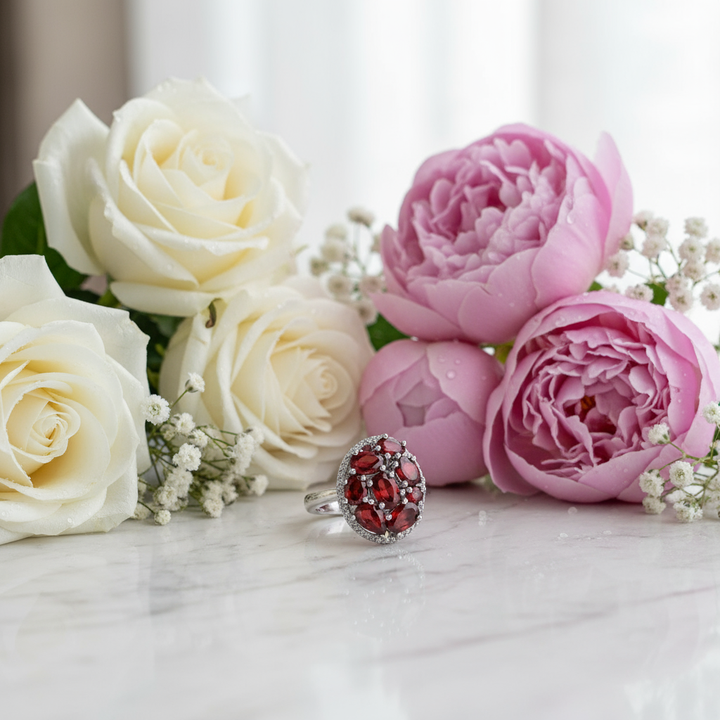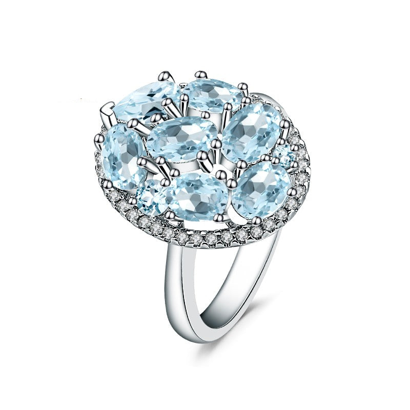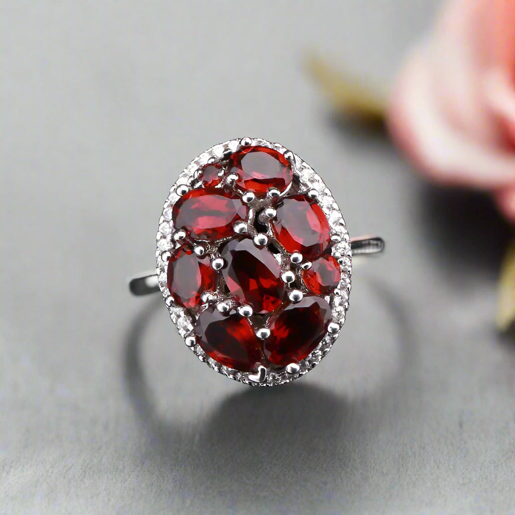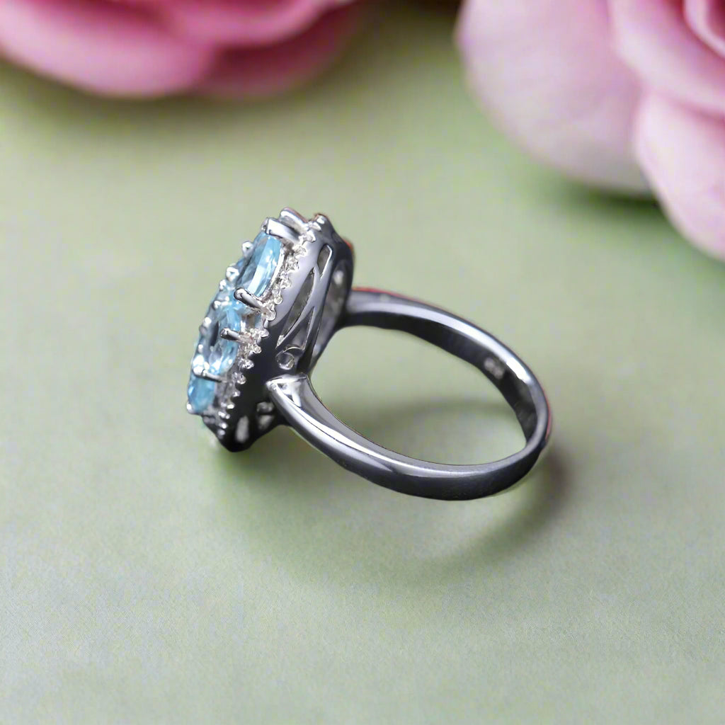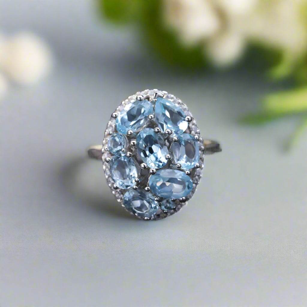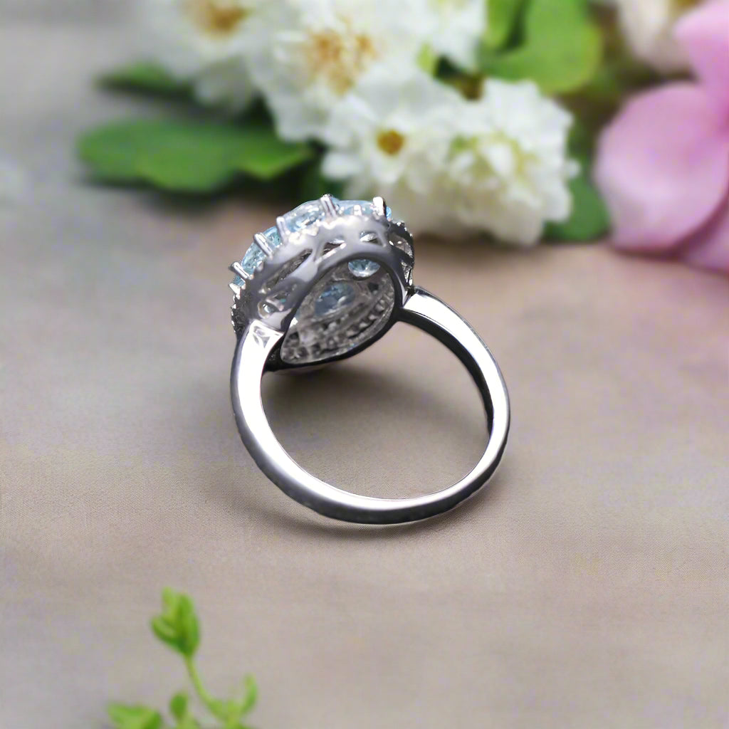 GRACE Gemstone Cluster Halo Ring in Sterling Silver