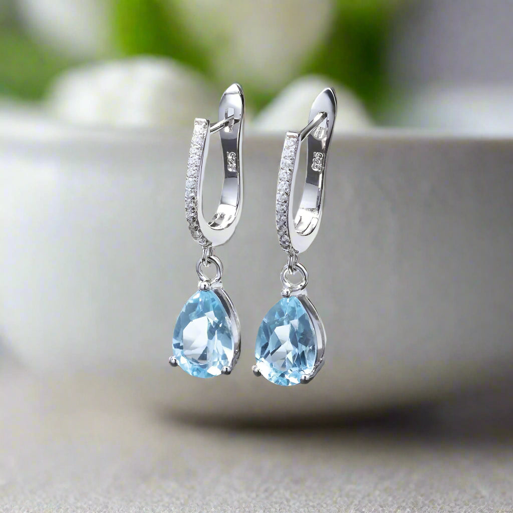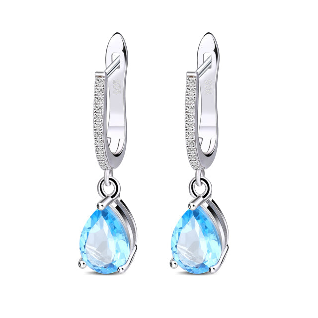 GRACE Pear Cut Gemstone Earrings in Sterling Silver