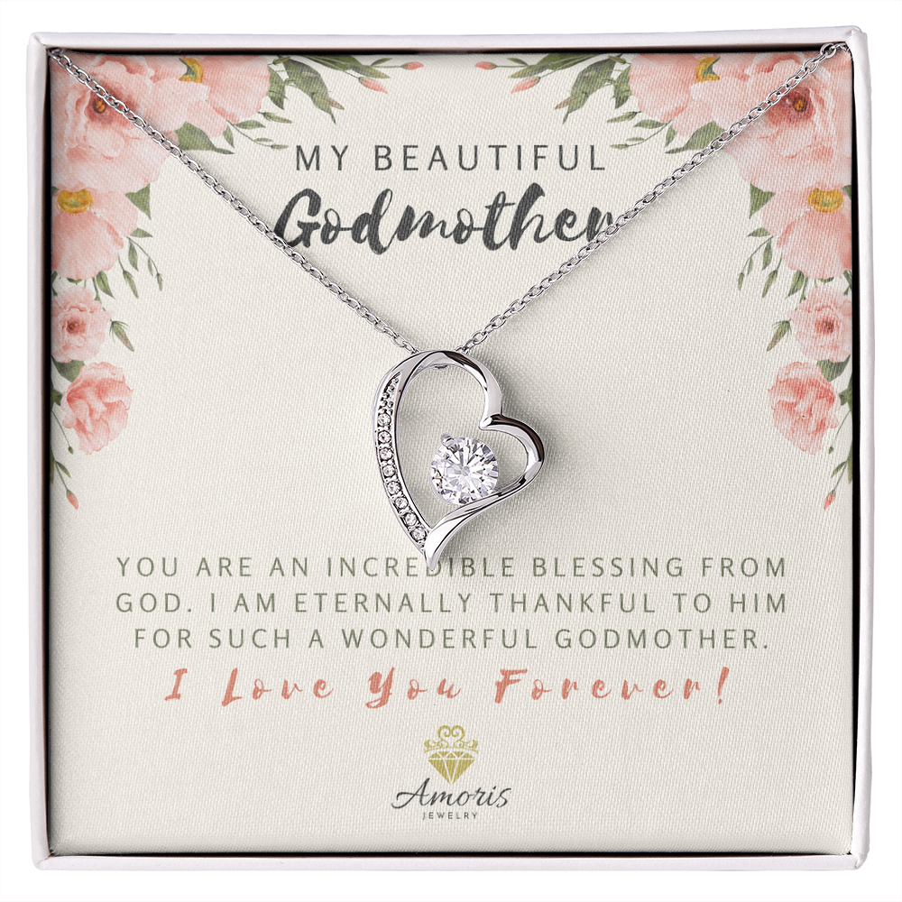 Collier « Ma belle marraine » avec carte de message « Amour éternel »