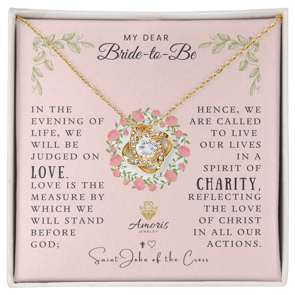 Collier avec nœud d'amour et citation de Saint Jean de la Croix, ma chère future mariée