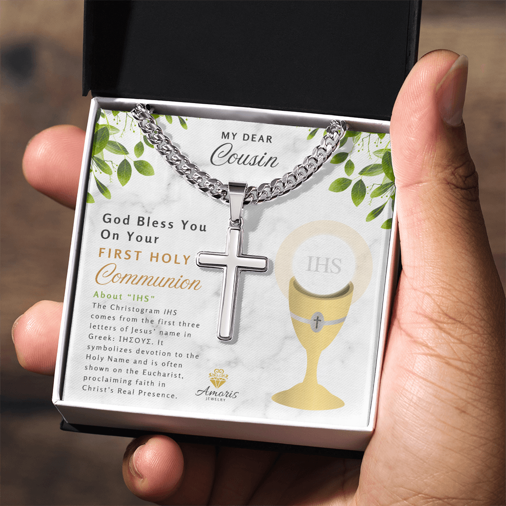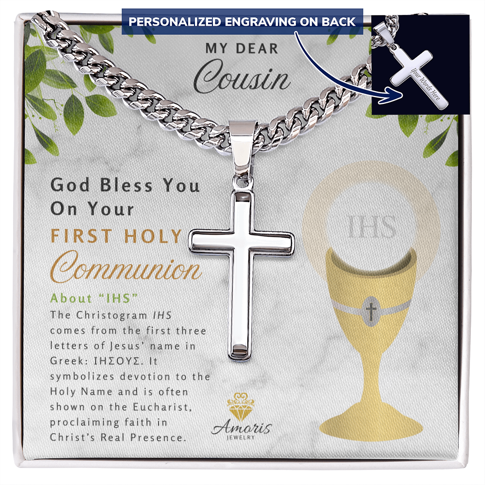 My Dear Cousin First Holy Communion Personalized Cross Necklace