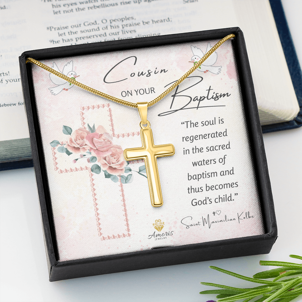 Cousin On Your Baptism Personalized Cross Necklace