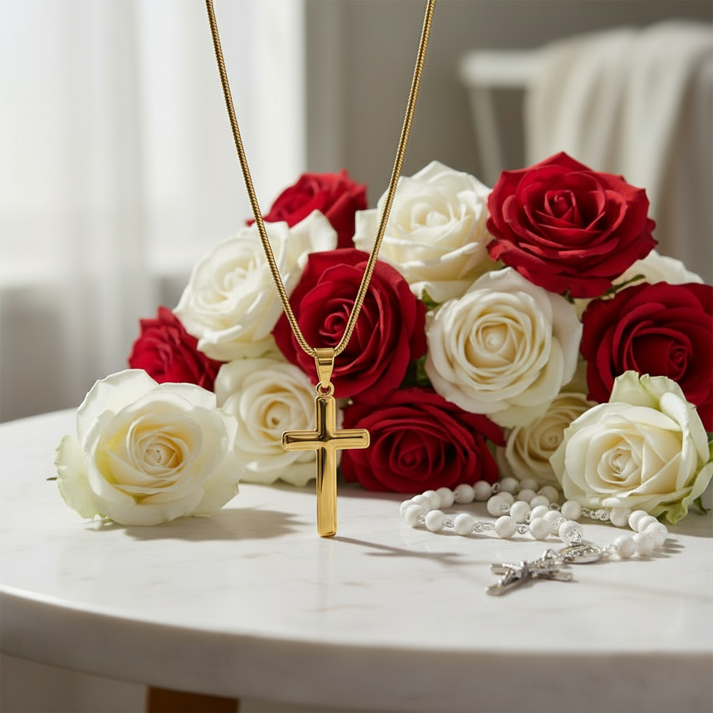 Commemorate the sacred occasion of her Confirmation with this beautifully crafted Personalized Cross Necklace. A symbol of the Holy Spirit’s presence and Christ’s abiding love, this necklace serves as a daily reminder of the strength and grace received through this Sacrament. Paired with a thoughtfully designed card to honor this profound milestone in faith, it makes a cherished gift for a loved one sealed with the gifts of the Holy Spirit.