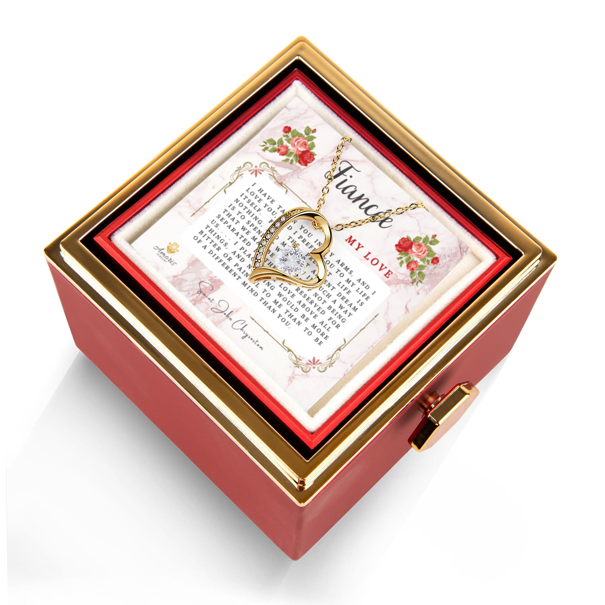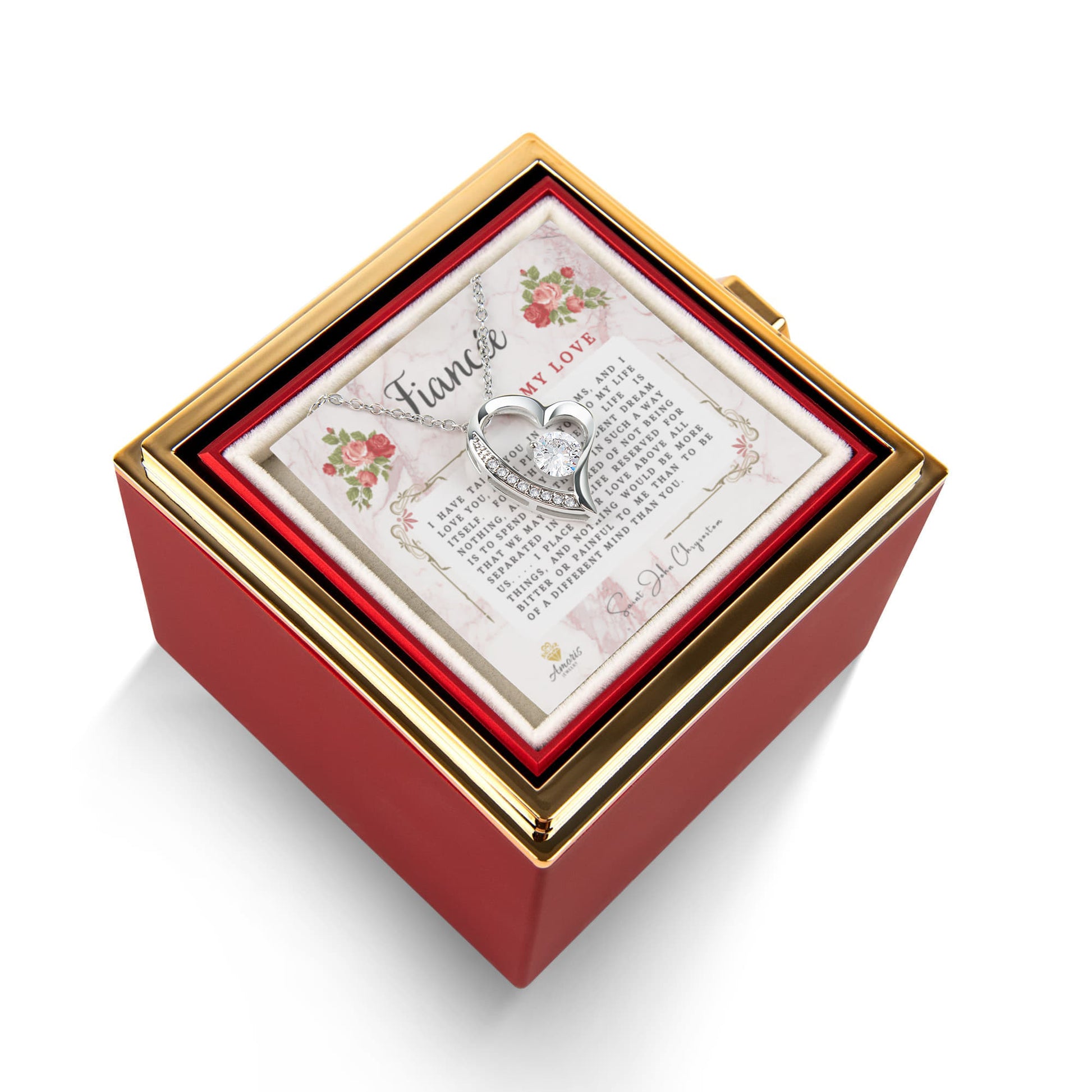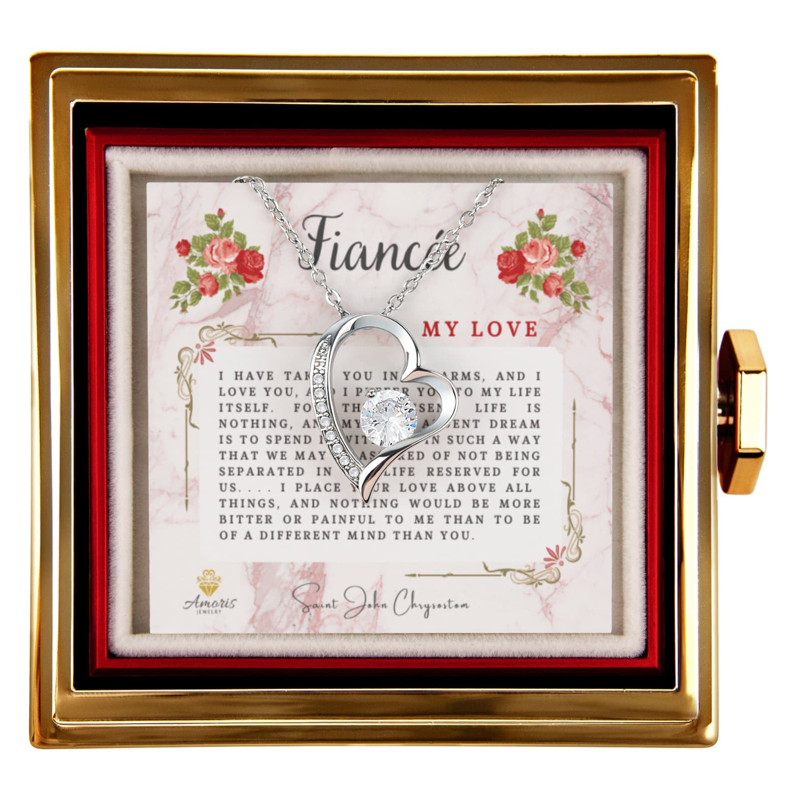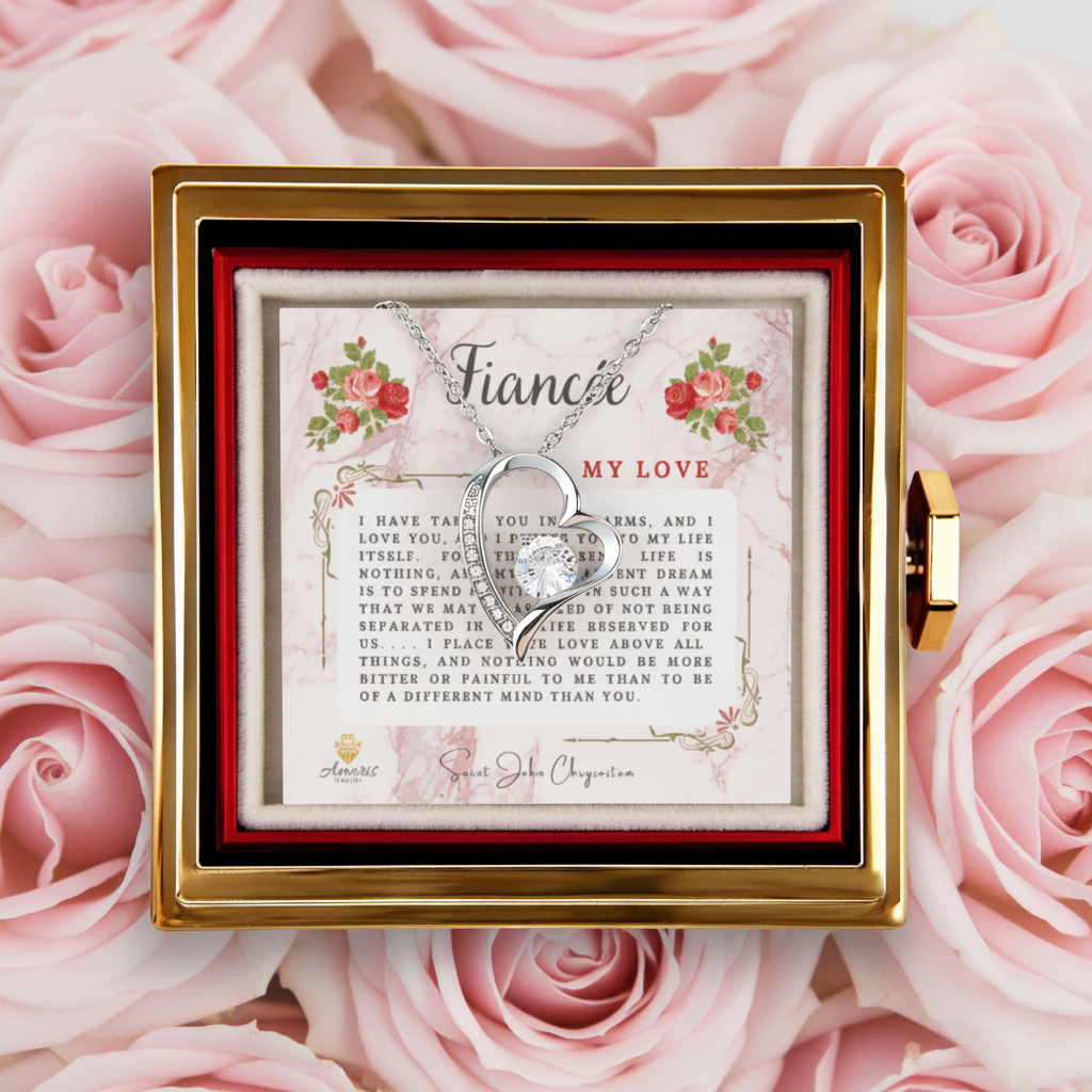 Fiancée My Love Heart Necklace with Eternal Rose and Saint John Chrysostom Quote