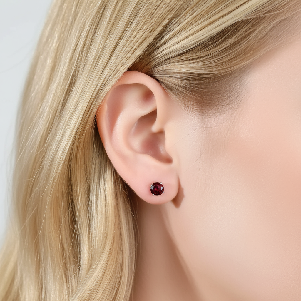 These stunning stud earrings boast 925 sterling silver and vibrant natural gemstones such as red garnet, amethyst, sky blue topaz, sapphire, and more. Each round stone, measuring 5 x 5 mm and 0.64 ct., is carefully chosen for its beauty and brilliance. Complete with push back posts, these earrings are the perfect addition to any jewelry collection.
