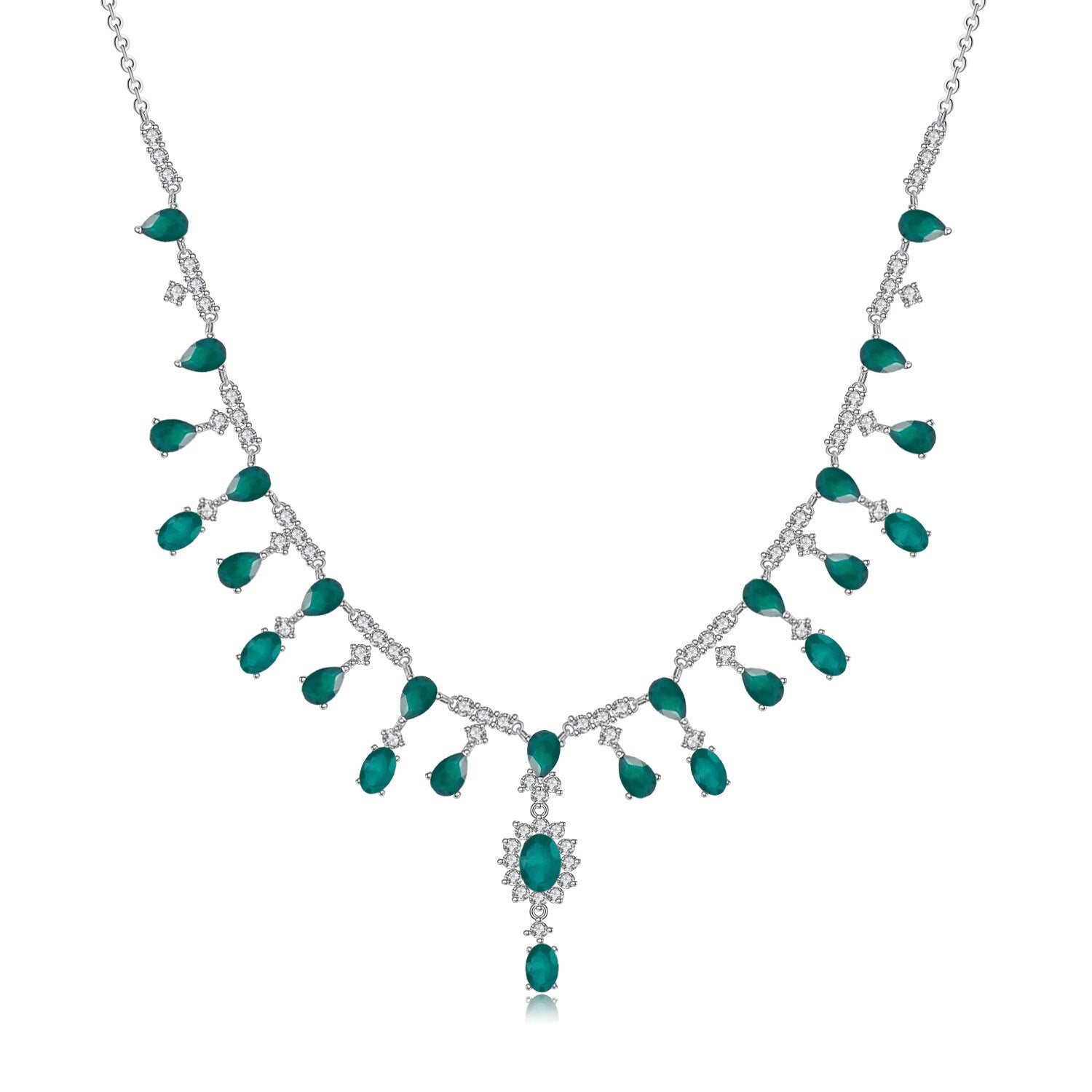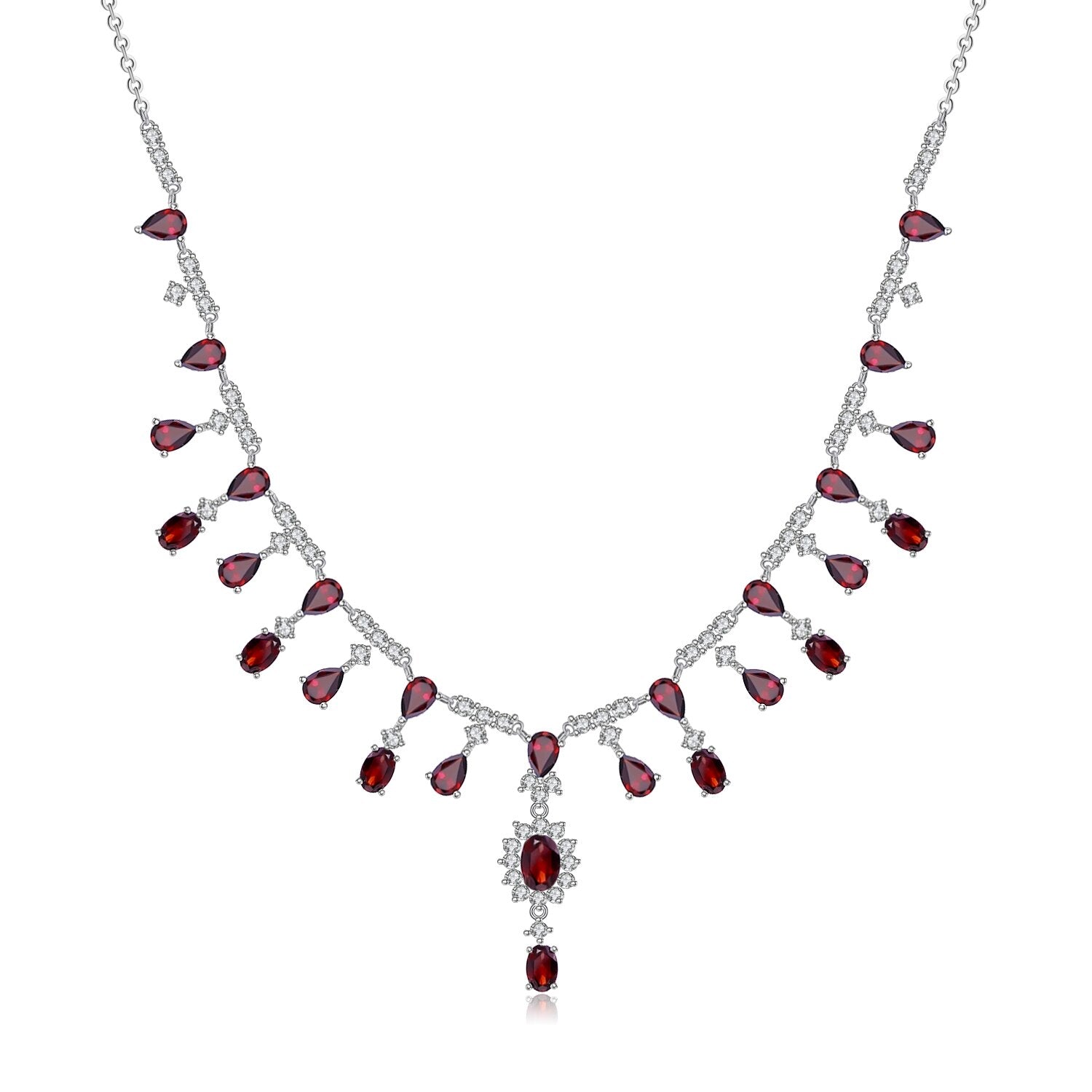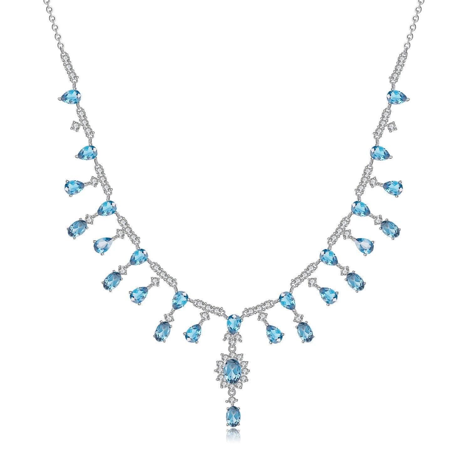 Discover timeless elegance with the GRACE Bridal Gemstone Necklace, a masterpiece in 925 sterling silver designed for the modern bride. Select your preferred natural gemstone from a curated collection featuring red garnet, sky blue topaz, green agate, London blue topaz, or Swiss blue topaz, each available in refined oval or pear cuts. Complemented by luminous white cubic zirconia accents, this necklace combines 15.2 carats of gemstone beauty with versatile styling. The adjustable 16.5" + 2" link chain ensures a graceful drape for any occasion, making this piece an enduring investment in sophisticated bridal jewelry.
