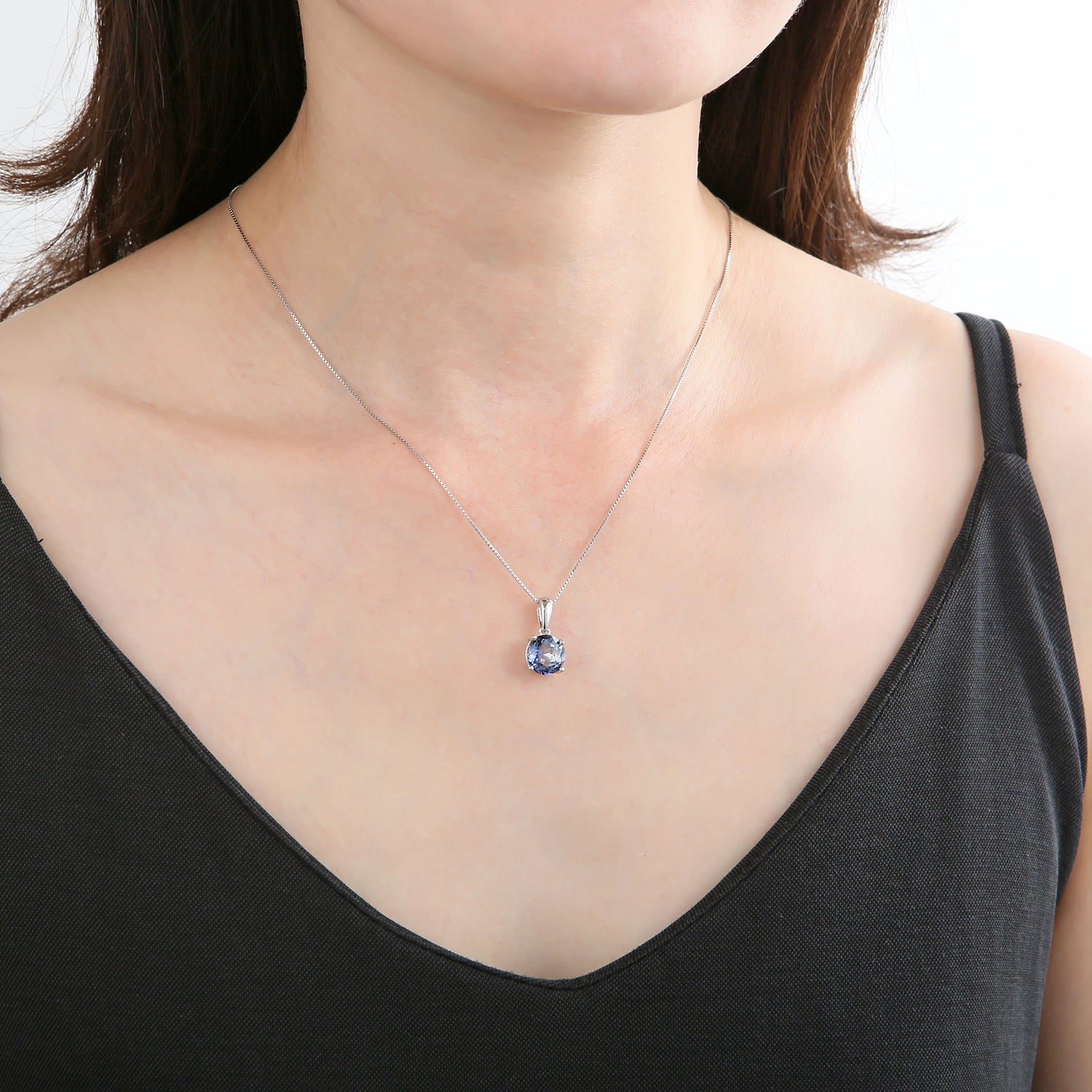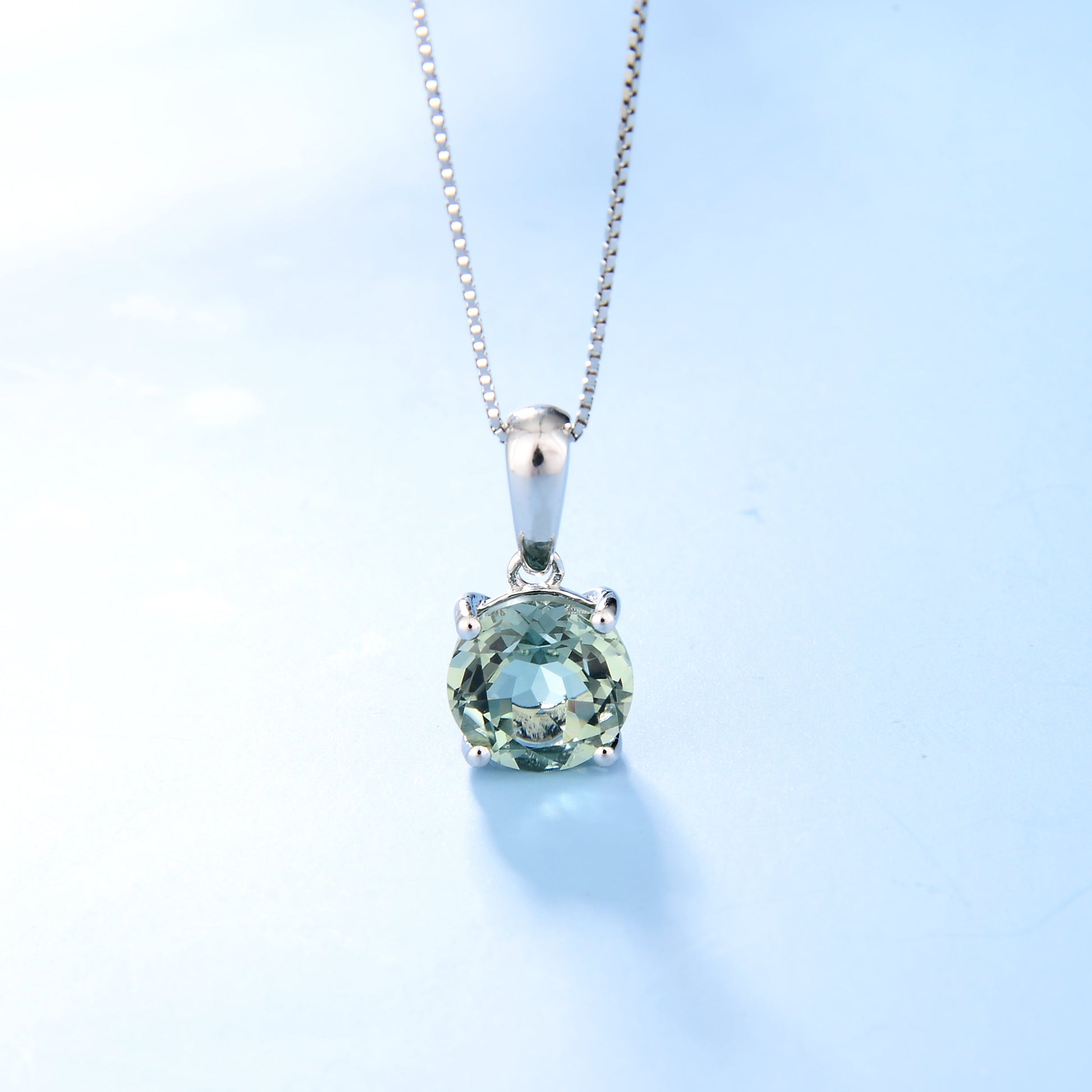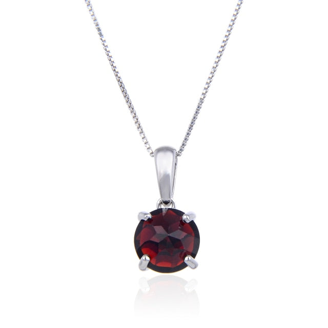GRACE Classic Round Gemstone Pendant Necklace in Sterling Silver