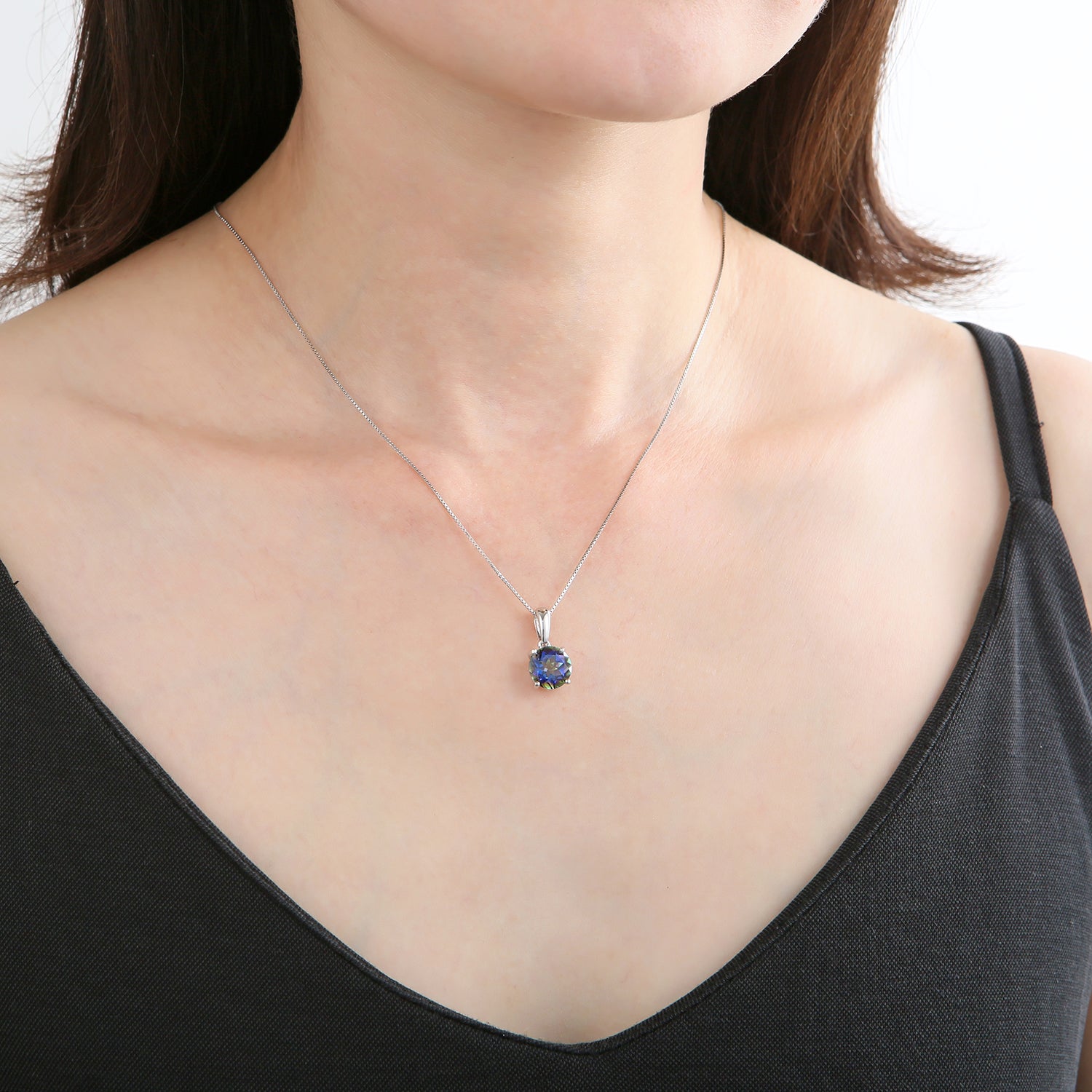 This GRACE Collection Classic Round Gemstone Pendant Necklace is the perfect accessory for any stylish occasion. Boasting a timeless and luxurious design, it is crafted from 925 sterling silver and hand-set with a choice of six precious natural gemstones - green amethyst, black garnet, mystic topaz, mystic quartz, citrine, and sky blue topaz.