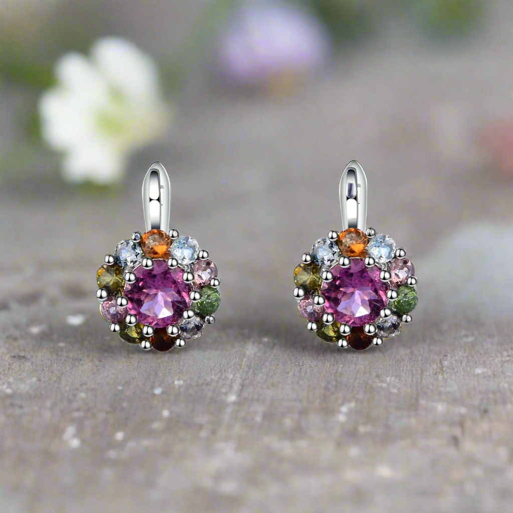 GRACE Gemstone Cluster Earrings in Sterling Silver
