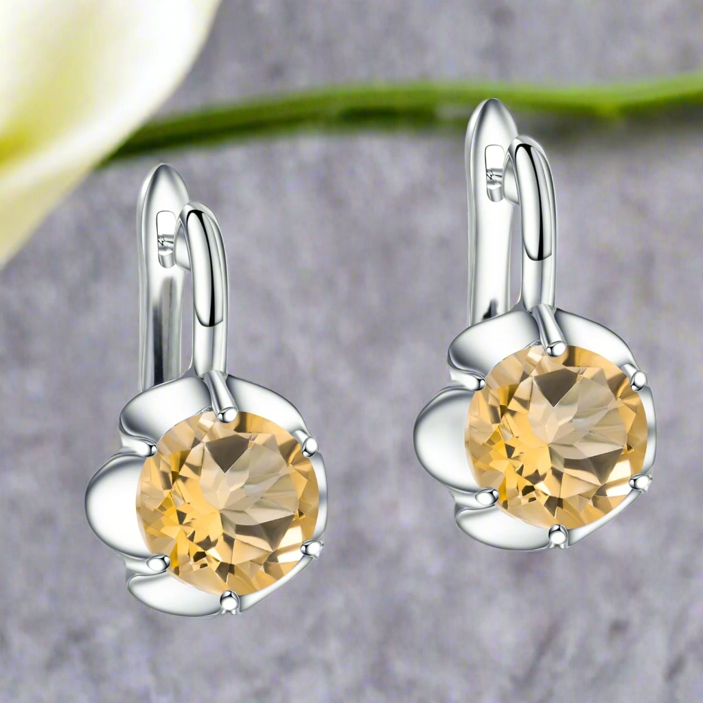 GRACE Gemstone Flower Drop Earrings in Sterling Silver