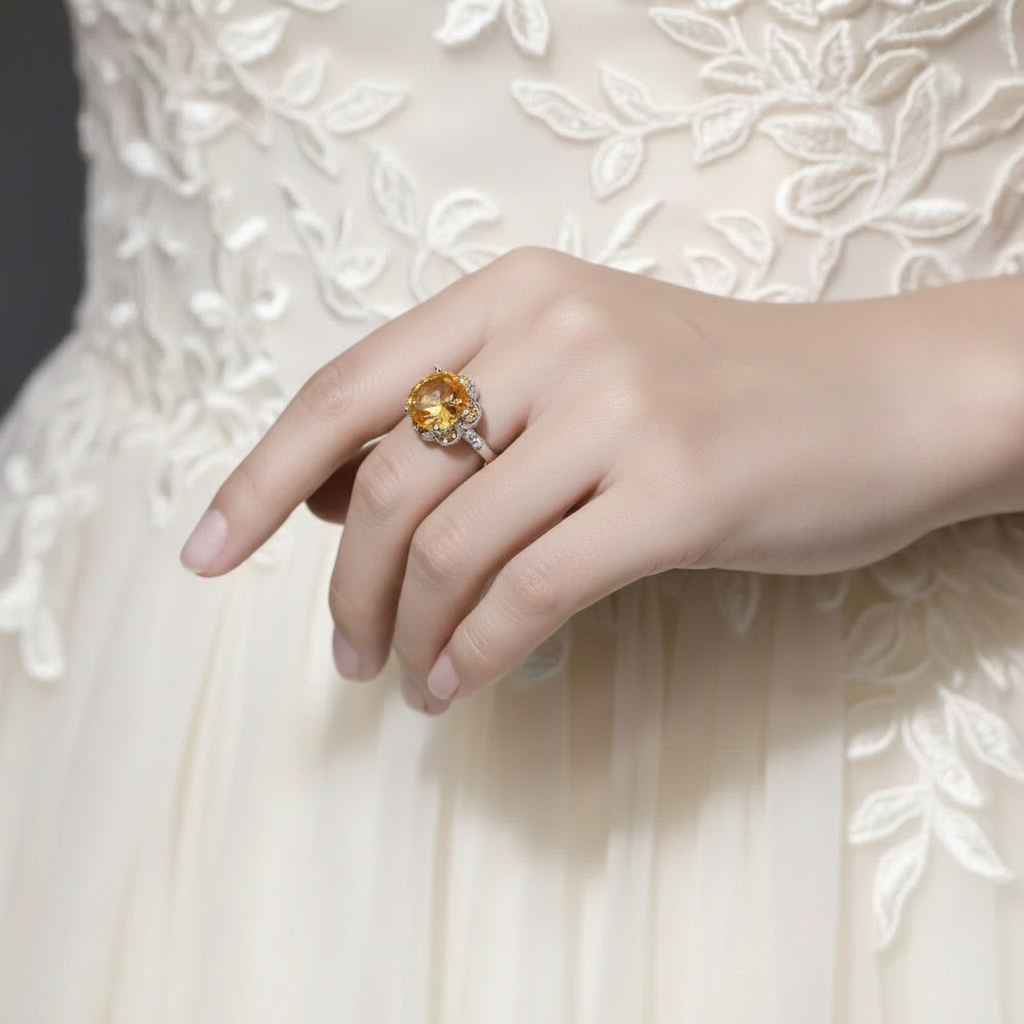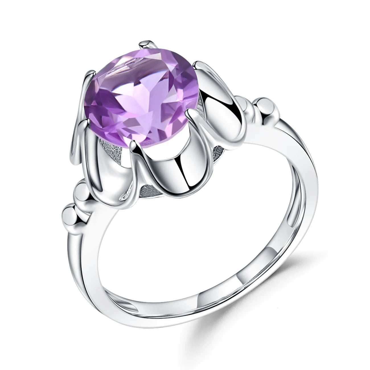 Elevate your wardrobe with this stunning GRACE Gemstone Flower Ring crafted in 925 sterling silver and set with a 2.74 ct. center gemstone of your choice from a selection of beautiful natural stones. Featuring a classic prong setting and an elegant 9 x 9 mm faceted stone, this graceful statement piece is sure to add a stunning, sophisticated touch to any outfit. An exquisite hand-crafted accessory with a luxurious feel sure to be admired.