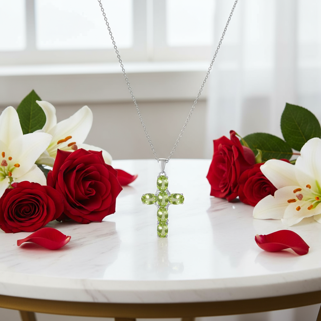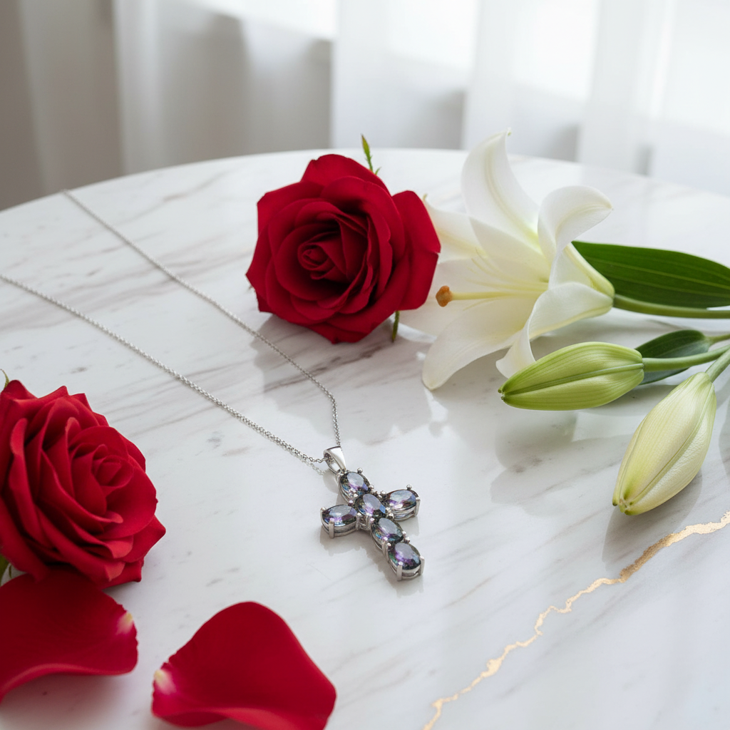 GRACE Oval Multi-Stone Cross Necklace in Sterling Silver