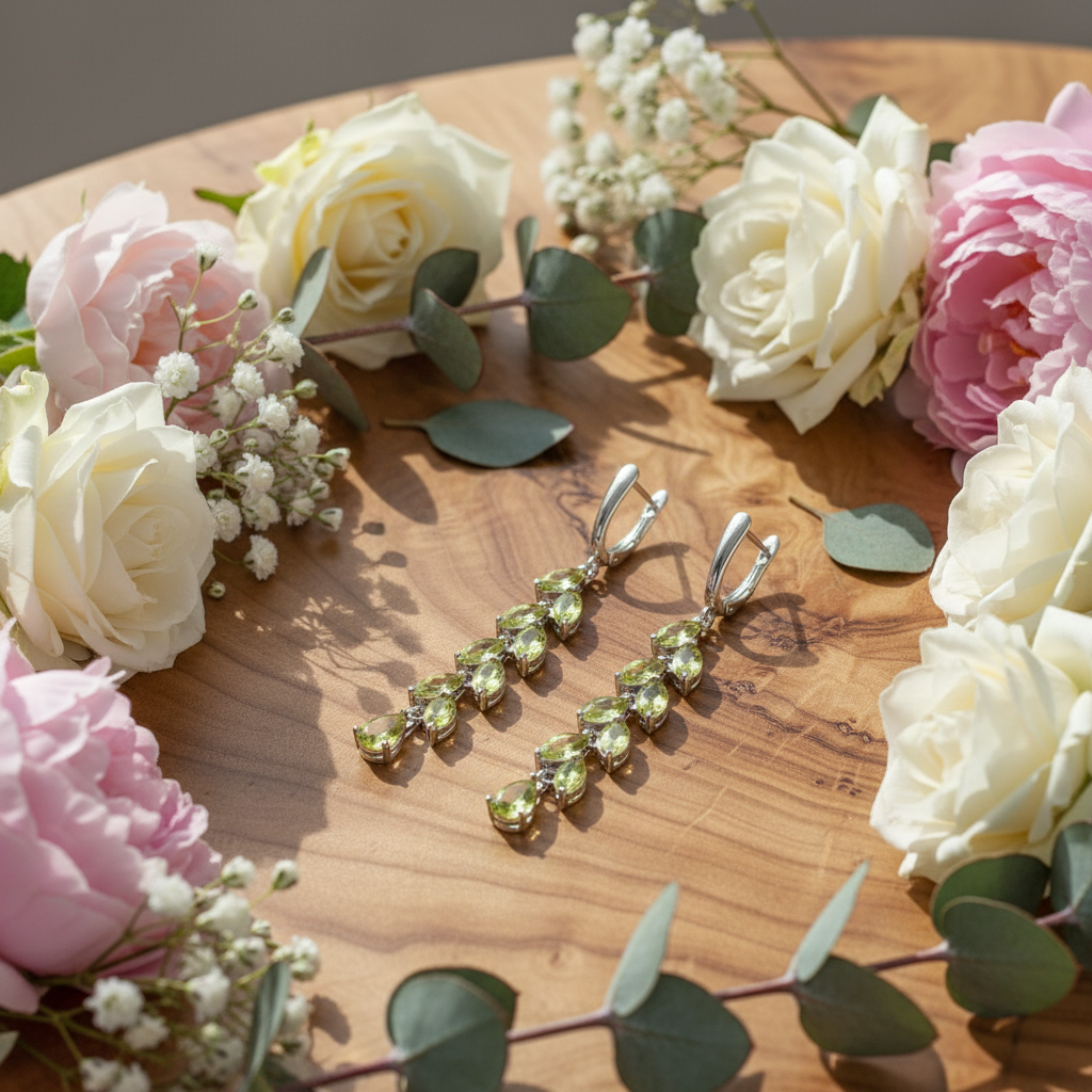 GRACE Peridot Leaves Drop Earrings in Sterling Silver