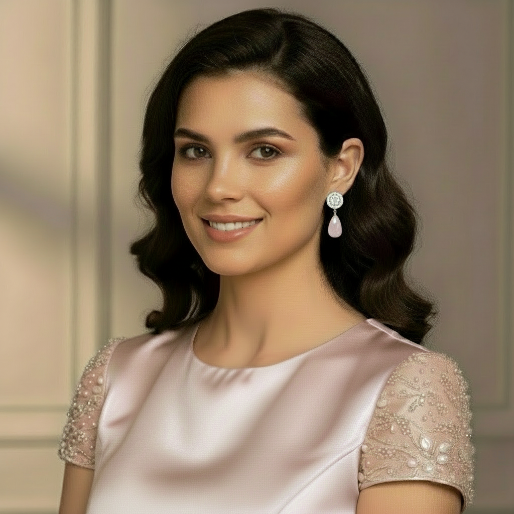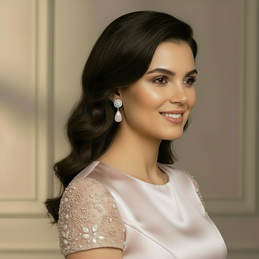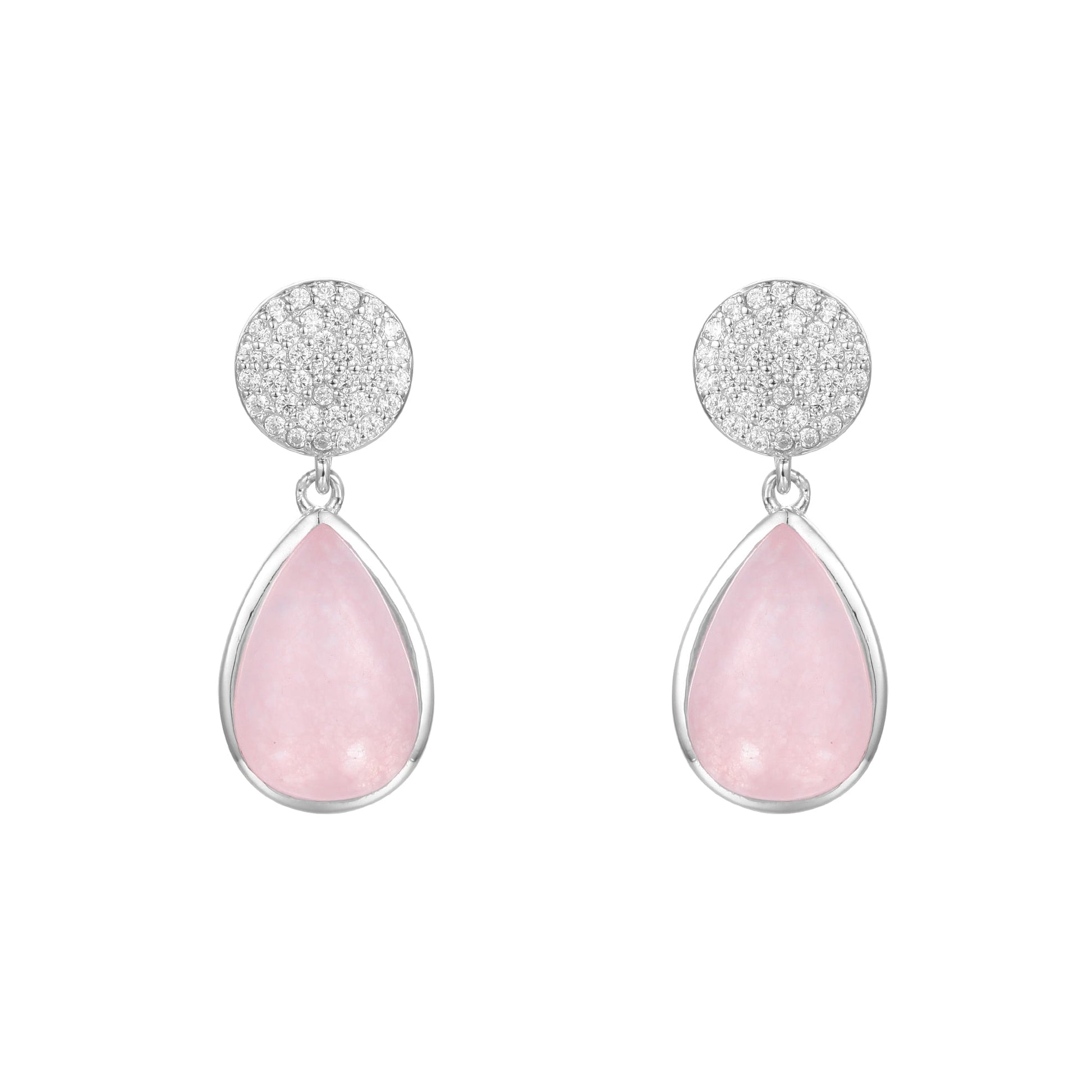 GRACE Rose Quartz CZ Drop Earrings in Sterling Silver