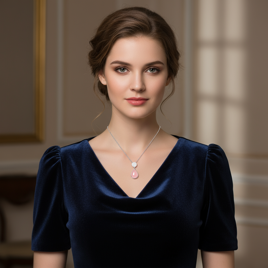 GRACE Rose Quartz CZ Pendant Necklace in Sterling Silver