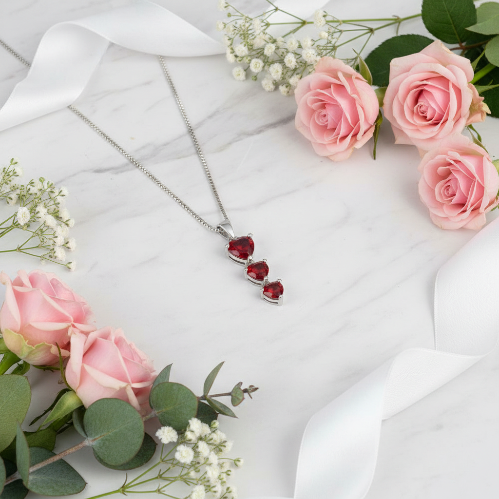 GRACE Three Hearts Natural Gemstone Pendant Necklace in Sterling Silver