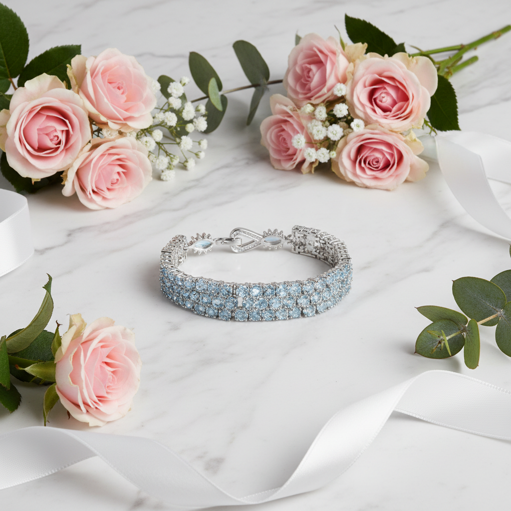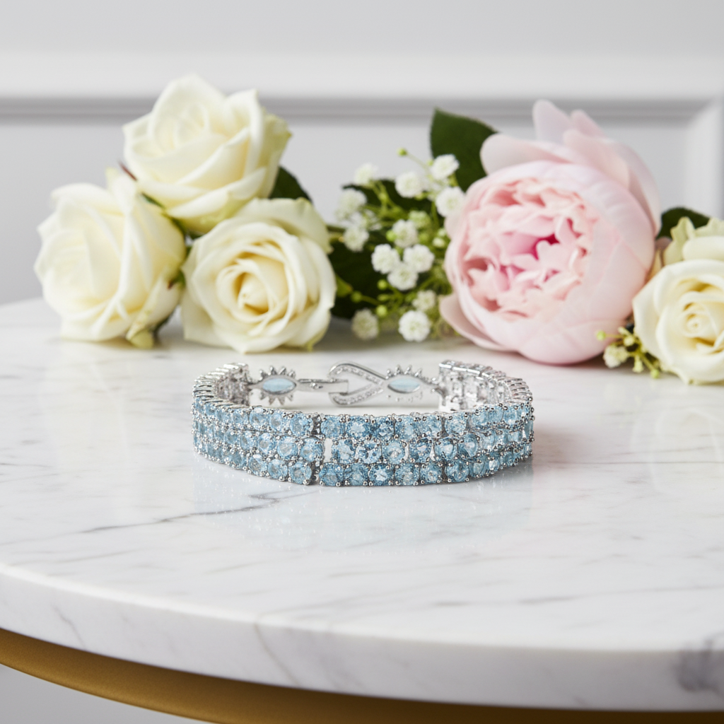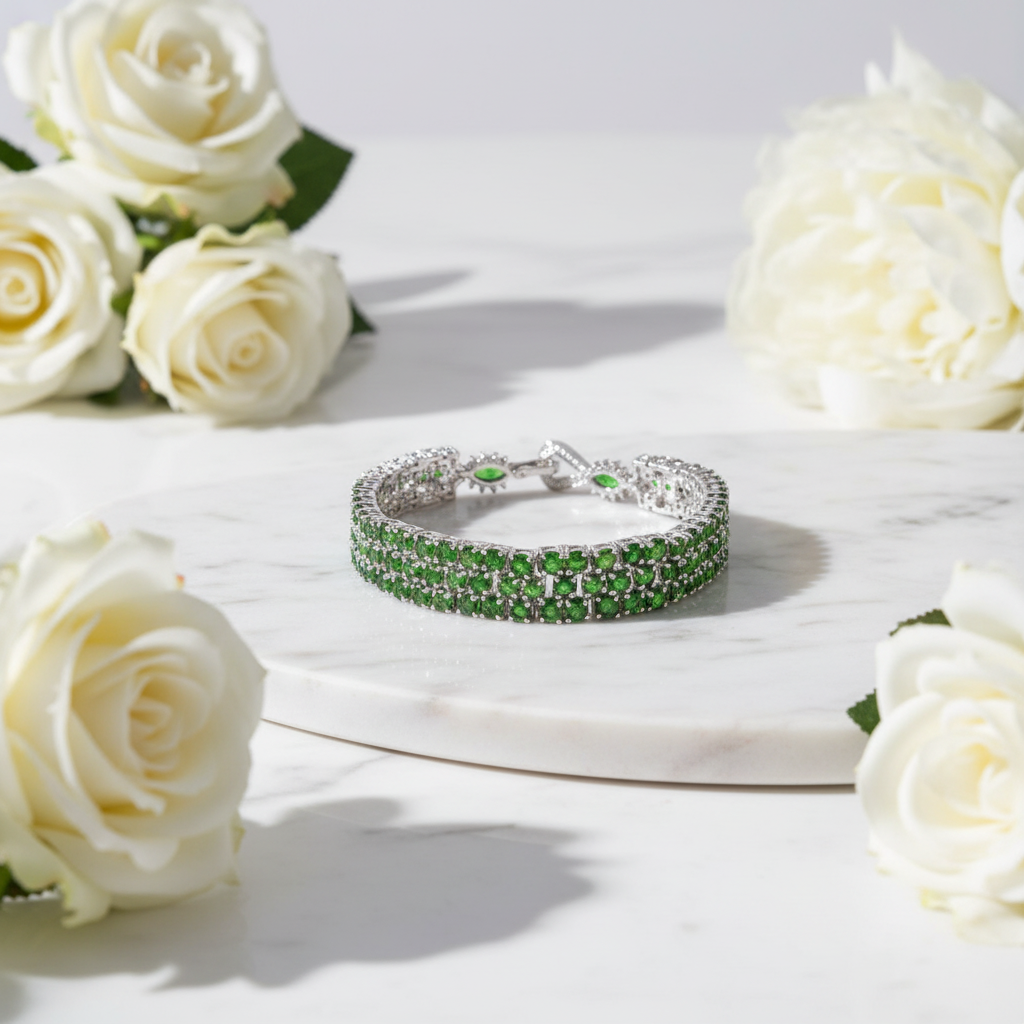 Elevate your everyday elegance with the GRACE Triple Row Gemstone Tennis Bracelet, where timeless sophistication meets modern allure. This sterling silver masterpiece features three stunning rows of hand-selected natural gemstones—rich red garnet, serene sky blue topaz, and vibrant chrome diopside—accented with brilliant white cubic zirconia. The expertly balanced 6.88" length and 0.48" width create a refined silhouette that catches light beautifully, making it an irresistible addition to your jewelry collection. Whether layered with other pieces or worn solo, this bracelet delivers the perfect balance of luxury and versatility for those who appreciate genuine gemstone beauty.