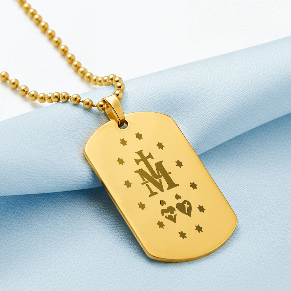 Miraculous Medal Verso Tag Necklace with Personalized Engraving