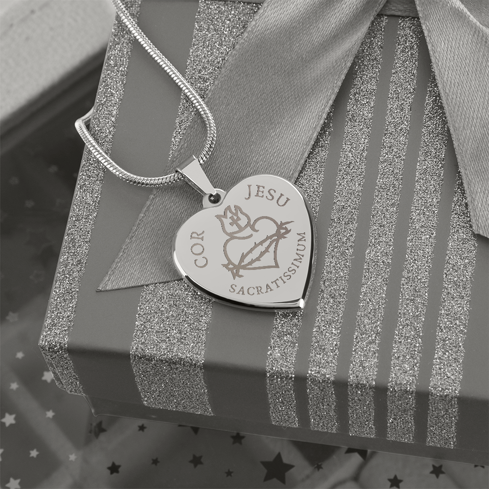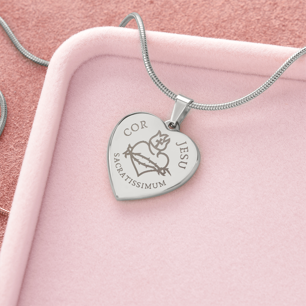 Most Sacred Heart of Jesus Heart Necklace with Personalized Engraving