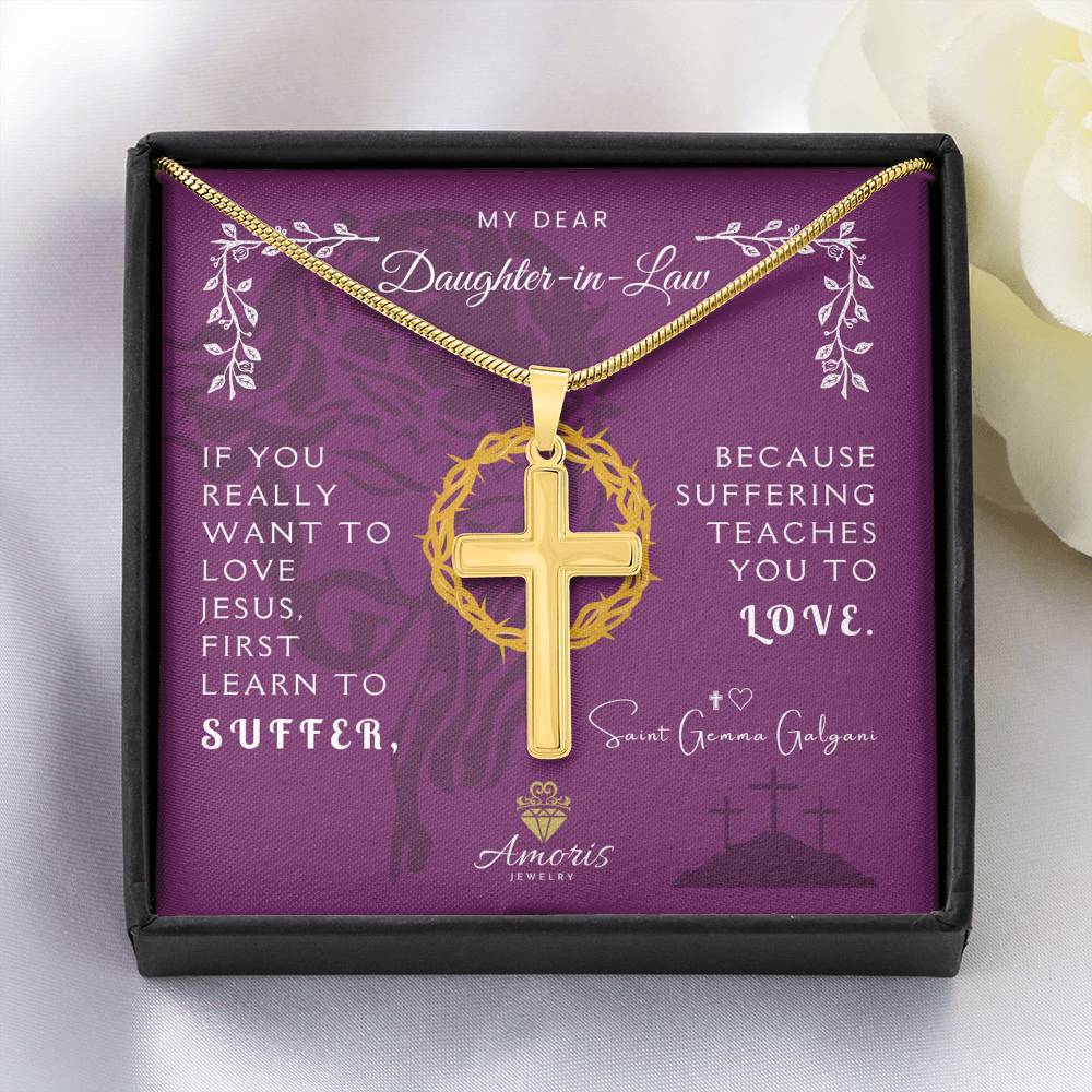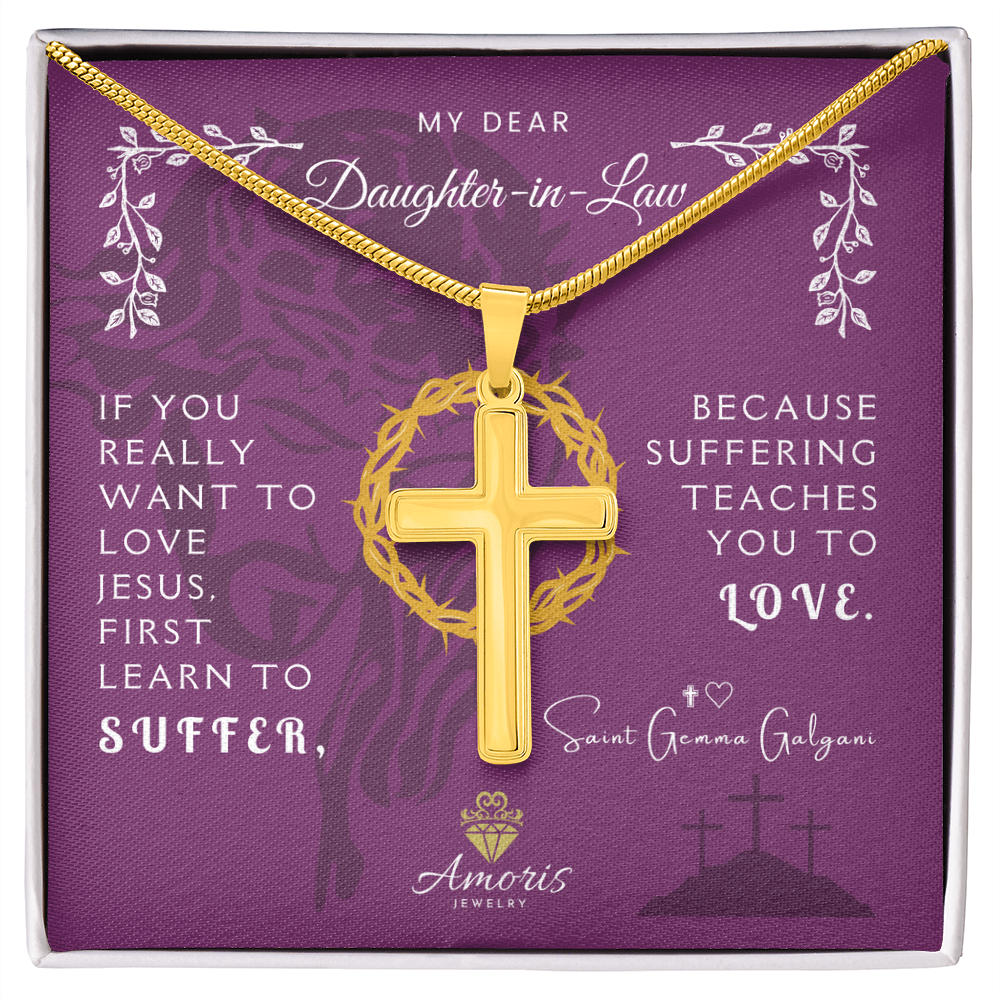 My Dear Daughter-in-Law Cross Necklace with Saint Gemma Galgani Quote