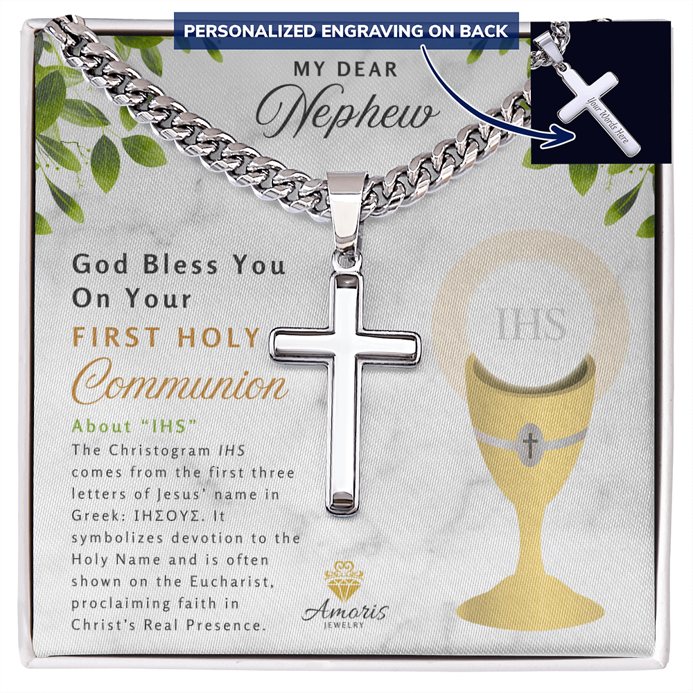 My Dear Nephew First Holy Communion Personalized Cross Necklace