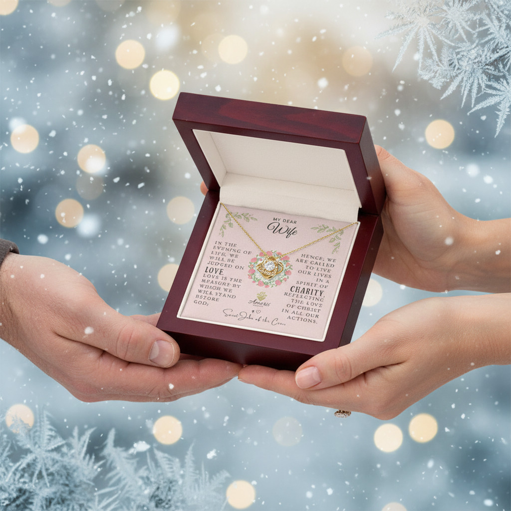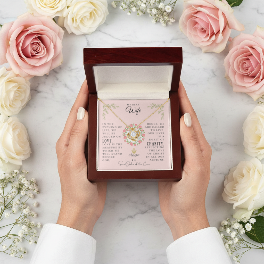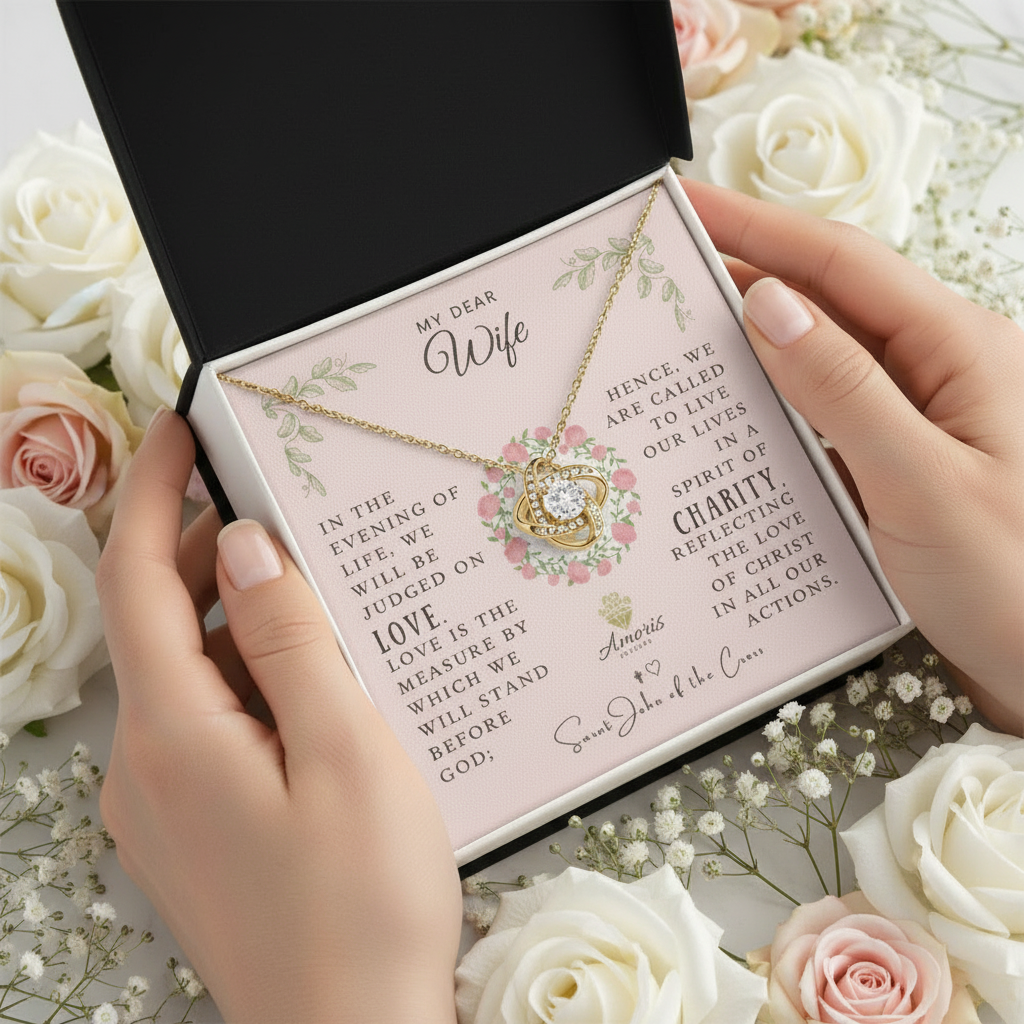 My Dear Wife Love Knot Necklace with Saint John of the Cross Quote