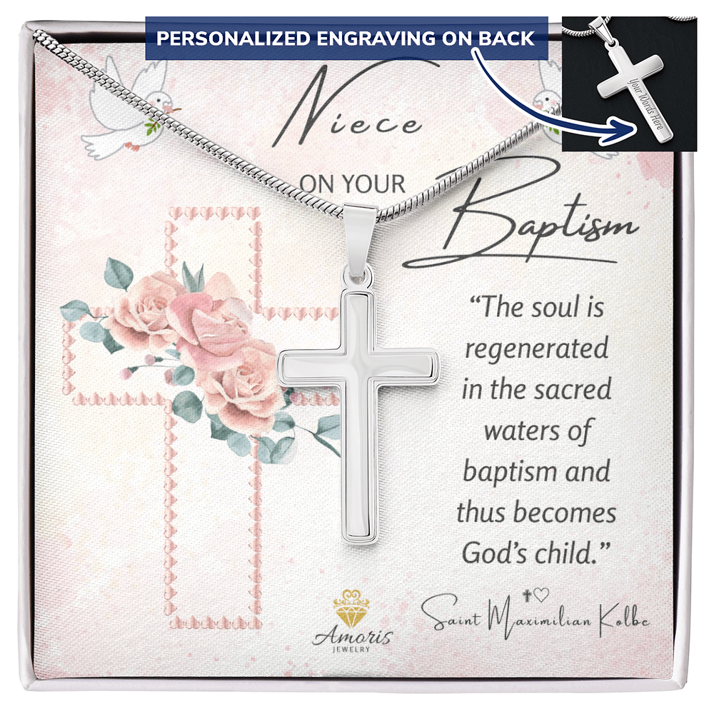 Celebrate the sacred occasion of Baptism with this beautifully crafted Personalized Cross Necklace. A symbol of Christ’s love and sacrifice, this necklace—presented with a thoughtfully designed card to honor this holy milestone—makes a meaningful gift for a special girl on her Baptism day.