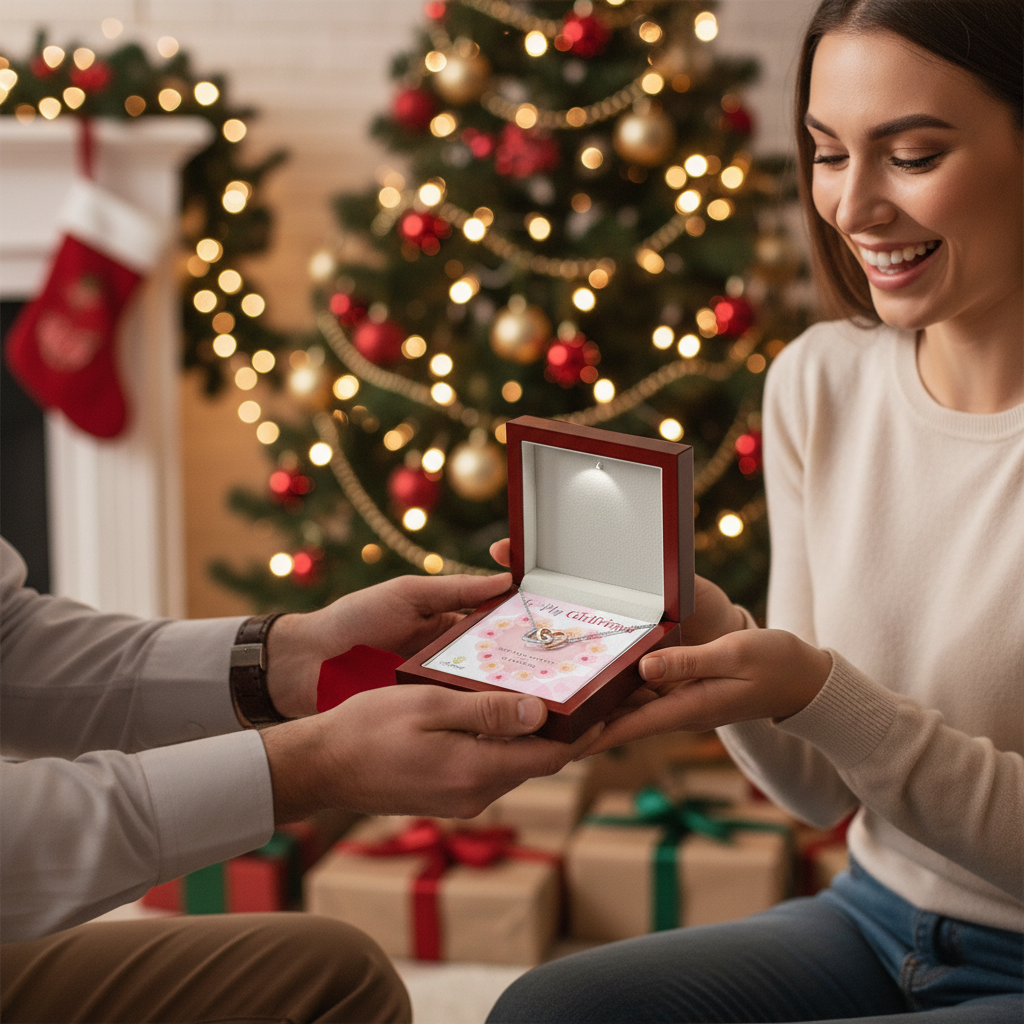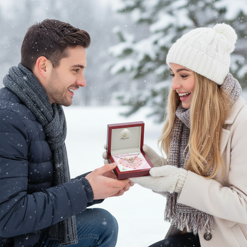 To My Girlfriend Interlocking Hearts Necklace with Message Card