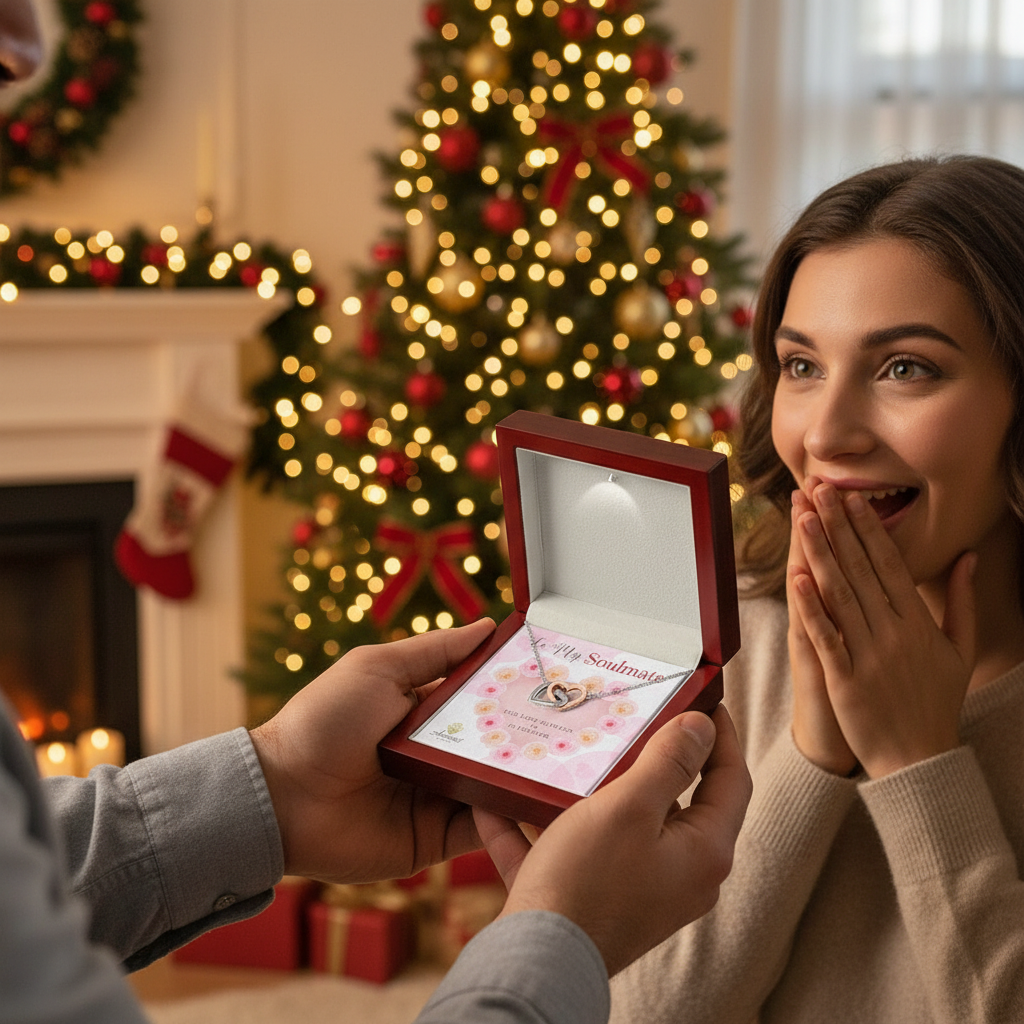 To My Soulmate Interlocking Hearts Necklace with Message Card